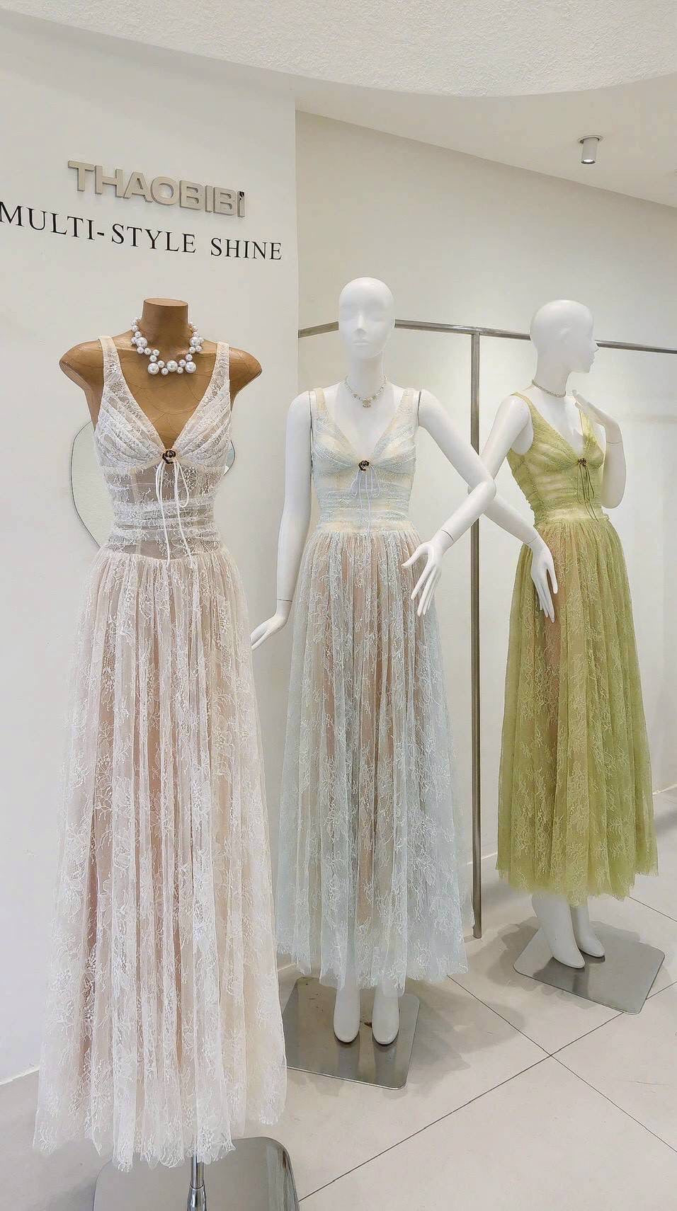 Elevate your evening look with the Gail Dress, crafted from high-quality lace fabric over a soft nude lining for a sophisticated, barely-there illusion. The plunging neckline is tastefully accented with a subtle ribbon detail, adding a touch of romantic charm. Perfect for formal occasions, this dress blends timeless elegance with modern allure.